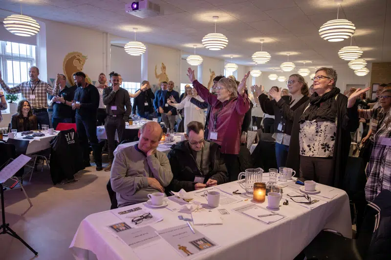 Eftermiddagen gemte på en overraskelse: et stort kor dukkede op, og pludselig stod deltagerne op og sang med. En sikker korleder løftede energien i rummet. Det blev et fælles øjeblik, hvor man både kunne høre og mærke, at livskvalitet bor i det, vi gør sammen.