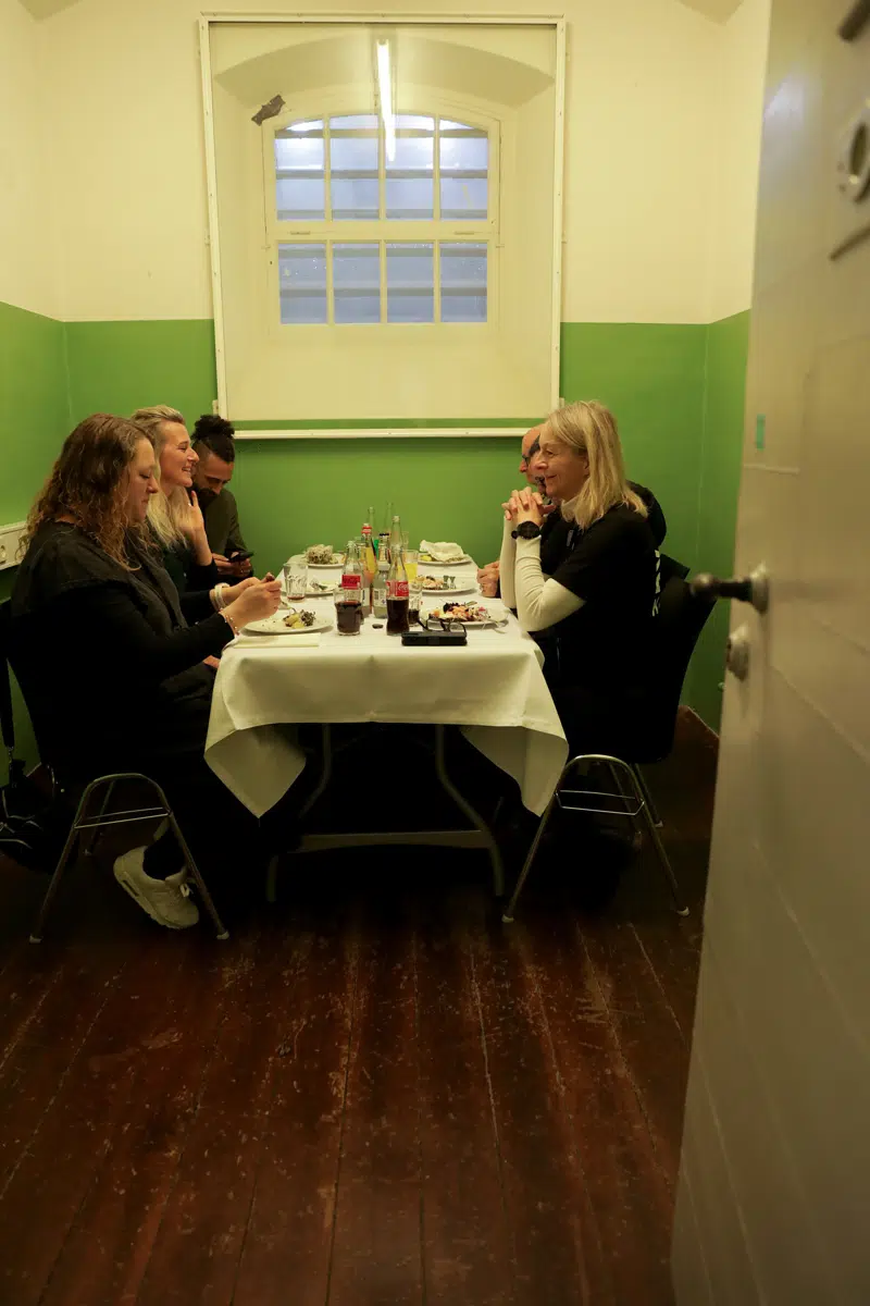 Eftermiddagen sluttede med en lærerig rundvisning i Fængslet (det tidligere Horsens Statsfængsel) med rigtige og erfarne fængselsbetjente som guider. Det gav en skarp kontrast til dagens emner, idet den grundige indføring i fængselslivet med kontrol, rutiner og langvarig indespærring satte seminarets fokus på frihed, fællesskaber og lokalt sammenhold i relief.