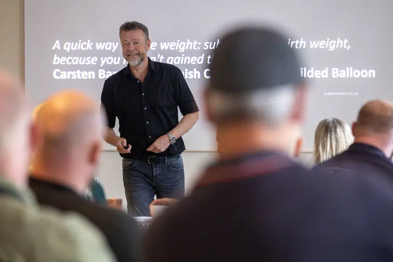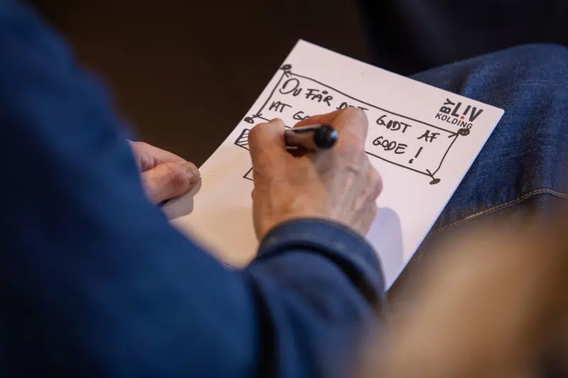 Eftermiddagen lød oprindeligt på et analyseoplæg, men sygdom ændrede programmet. I stedet havde ByLivKolding fået fat i standupkomiker og radiovært Carsten Bang.