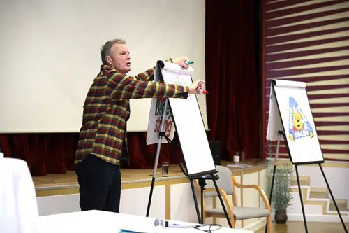 I sit foredrag udfordrede Thomas Mygind deltagerne til at overveje, hvordan vores indre indstillinger påvirker vores velbefindende og handlekraft. Gennem humoristiske eksempler, kropslige øvelser og et kærkomment gensyn med Peter Plys’ univers, satte han fokus på de mentale ”programmer”, der præger vores hverdag.